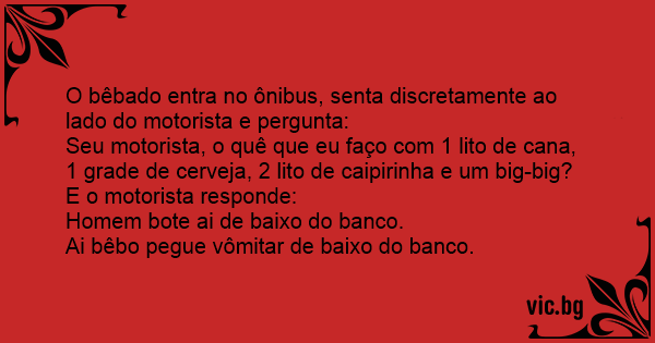 O bêbado entra no ônibus, senta discretamente ao lado do motorista e pergunta: