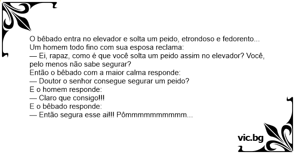 O bêbado entra no elevador e solta um реidо, etrondoso e fedorento...