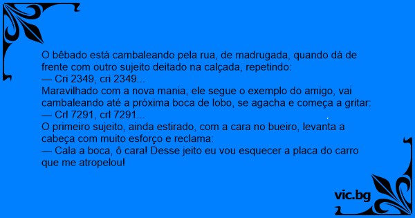 — Cala a boca, ô cara! Desse jeito eu vou esquecer a placa do carro que me atropelou!