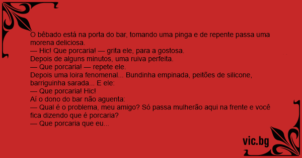 — Hic! Que porcaria! — grita ele, para a gostosa.