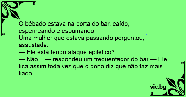 — Não... — respondeu um frequentador do bar — Ele fiса assim toda vez que o dono diz que não faz mais fiado!