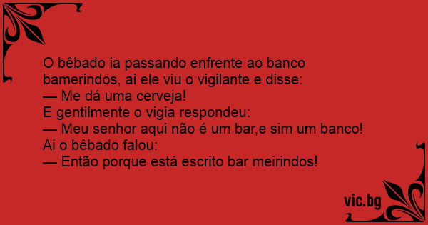 O bêbado ia passando enfrente ao banco bamerindos, ai ele viu o vigilante e disse: