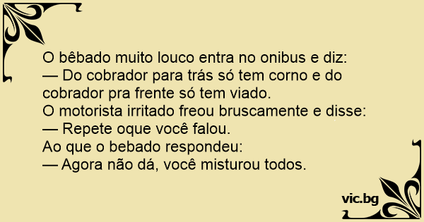 O bêbado muito louco entra no onibus e diz:
