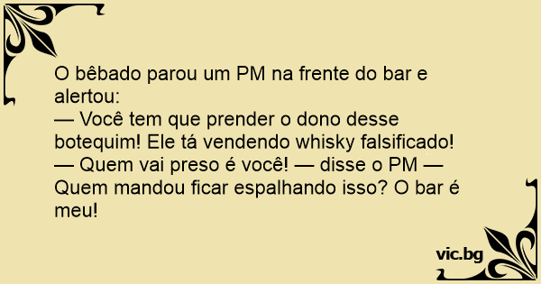 — Quem vai preso é você! — disse o PM — Quem mandou ficar espalhando isso? O bar é meu!