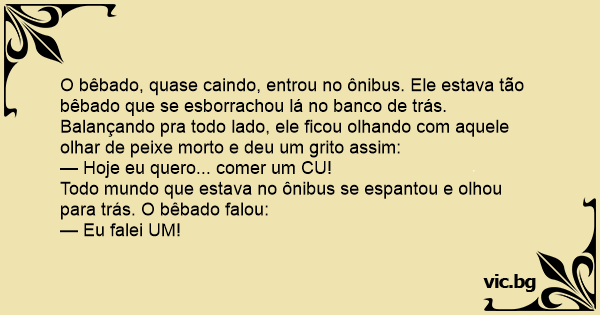 Todo mundo que estava no ônibus se espantou e olhou para trás. O bêbado falou: