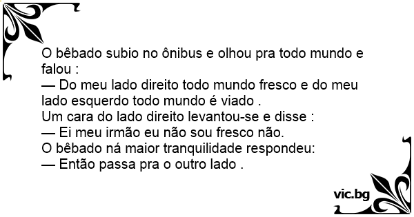 O bêbado subio no ônibus e olhou pra todo mundo e falou :