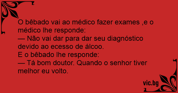 O bêbado vai ao médico fazer exames ,e o médico lhe responde: