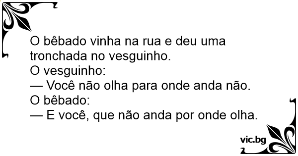 O bêbado vinha na rua e deu uma tronchada no vesguinho.