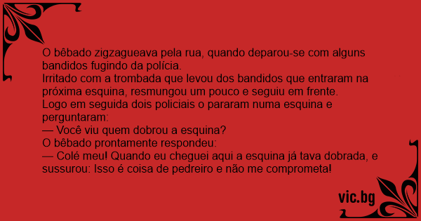 — Colé meu! Quando eu cheguei aqui a esquina já tava dobrada, e sussurou: Isso é coisa de pedreiro e não me comprometa!