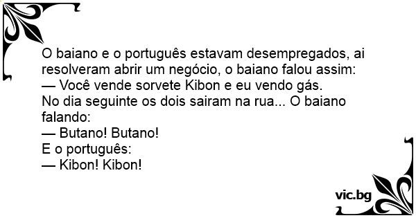 O baiano e o português estavam desempregados, ai resolveram abrir um negócio, o baiano falou assim: