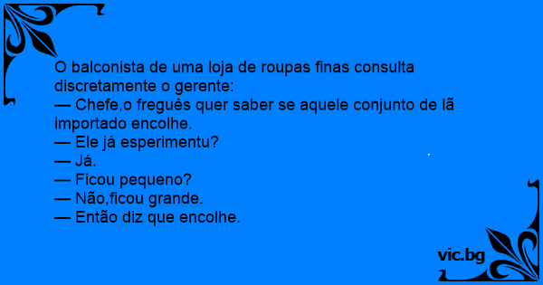 — Chefe,o freguês quer saber se aquele conjunto de lã importado encolhe.