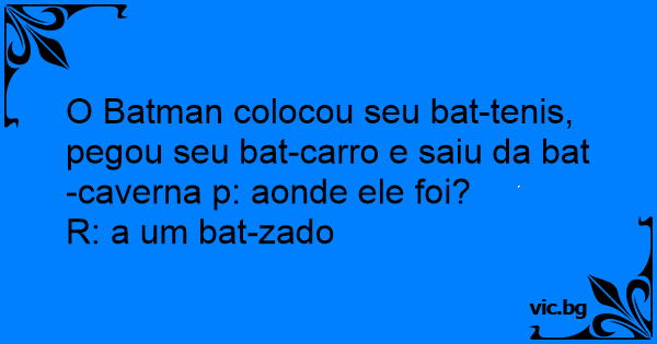 O Batman colocou seu bat-tenis, pegou seu bat-carro e saiu da bat-caverna p: aonde ele foi?