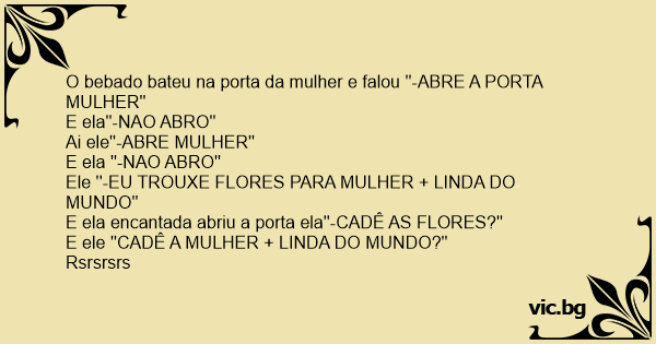O bebado bateu na porta da mulher e falou ''-ABRE A PORTA MULHER''