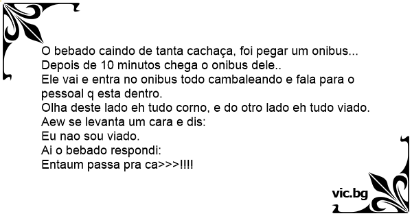 O bebado caindo de tanta cachaça, foi pegar um onibus...