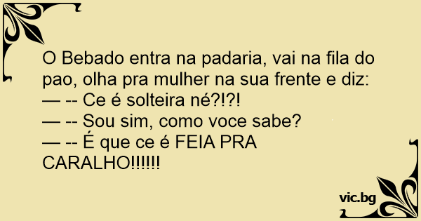 O Bebado entra na padaria, vai na fila do pao, olha pra mulher na sua frente e diz:
