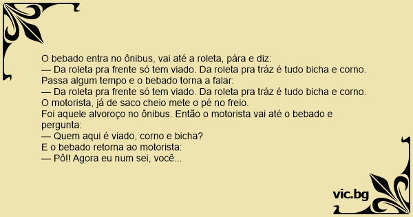 O bebado entra no ônibus, vai até a roleta, pára e diz:
