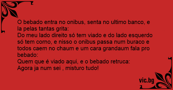 O bebado entra no onibus, senta no ultimo banco, e la pelas tantas grita: