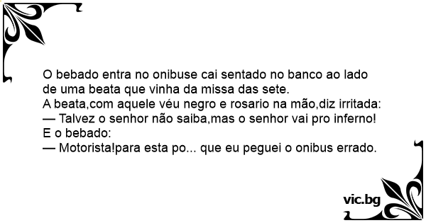 O bebado entra no onibuse cai sentado no banco ao lado de uma beata que vinha da missa das sete.