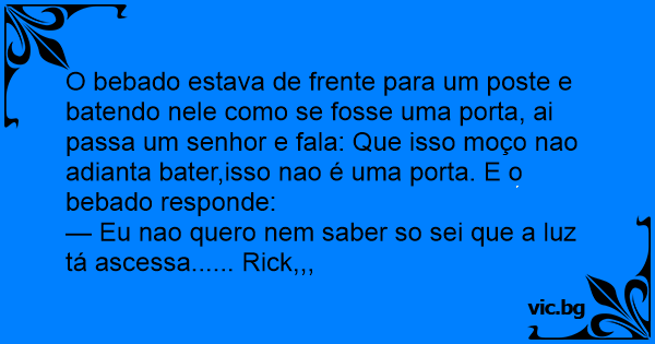 O bebado estava de frente para um poste e batendo nele como se fosse uma porta, ai passa um senhor e fala: Que isso moço nao adianta bater,isso nao é uma porta. E o bebado responde: