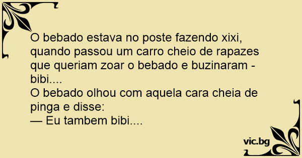 O bebado estava no poste fazendo xixi, quando passou um carro cheio de rapazes que queriam zoar o bebado e buzinaram - bibi....