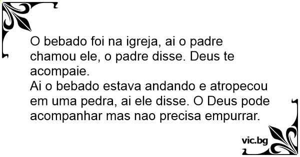 O bebado foi na igreja, ai o padre chamou ele, o padre disse. Deus te acompaie.