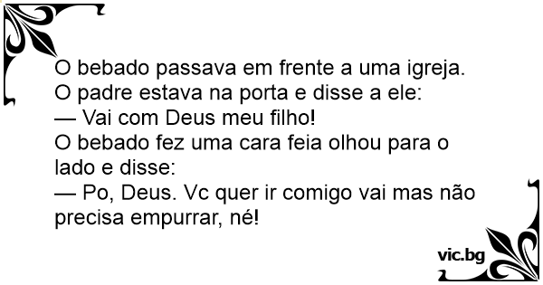 O bebado passava em frente a uma igreja. O padre estava na porta e disse a ele: