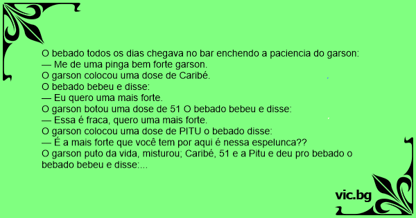 O garson botou uma dose de 51 O bebado bebeu e disse: