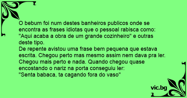 O bebum foi num destes banheiros publicos onde se encontra as frases idiotas que o pessoal rabisca como: