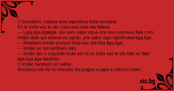 — Liga,liga,ligaliga. ele sem sabe oque era isso,resolveu fala com irmão dele qui estava no japão, pra sabe oqui significava liga,liga.