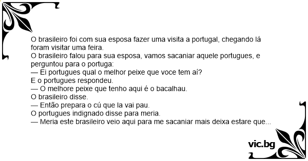 O brasileiro falou para sua esposa, vamos sacaniar aquele portugues, e perguntou para o portuga: