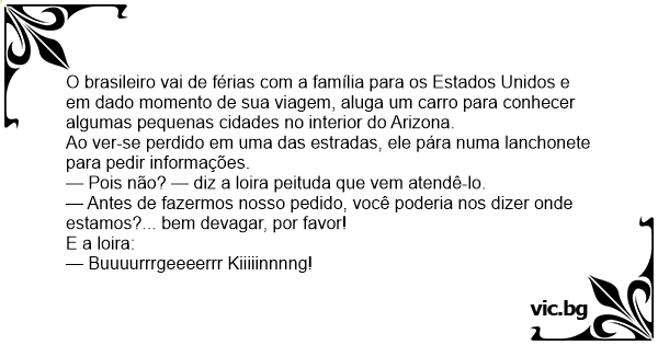 — Antes de fazermos nosso pedido, você poderia nos dizer onde estamos?... bem devagar, por favor!
