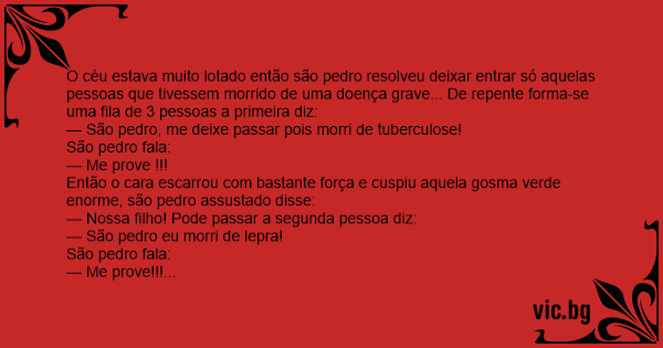 — São pedro, me deixe passar pois morri de tuberculose!