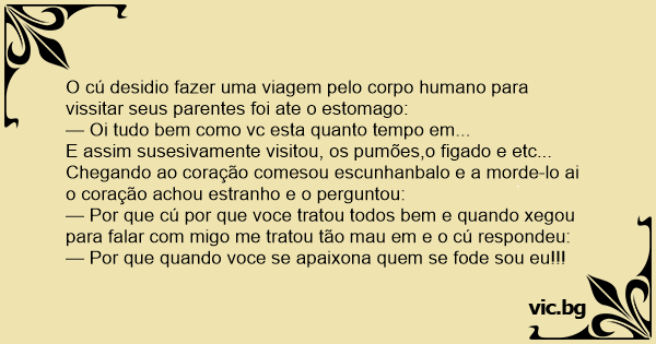 Chegando ao coração comesou escunhanbalo e a morde-lo ai o coração achou estranho e o perguntou: