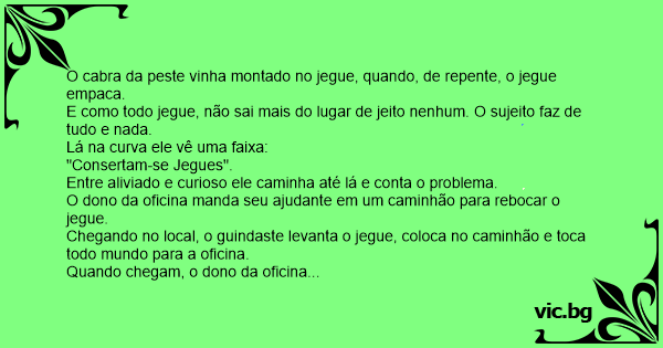 O cabra da peste vinha montado no jegue, quando, de repente, o jegue empaca.