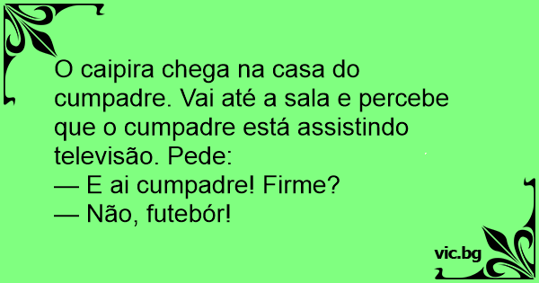 O caipira chega na casa do cumpadre. Vai até a sala e percebe que o cumpadre está assistindo televisão. Pede: