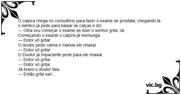 — Olha vou começar o exame se doer o senhor grita, ok.