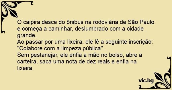 Ao passar por uma lixeira, ele lê a seguinte inscrição: