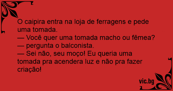 O caipira entra na loja de ferragens e pede uma tomada.