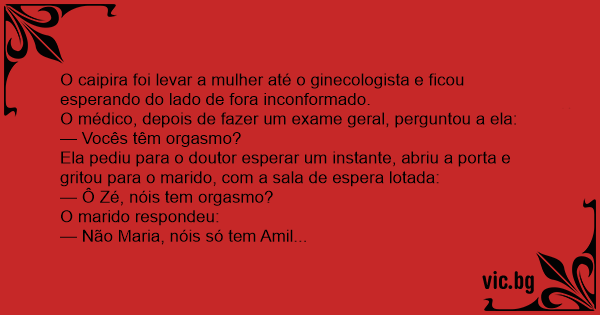Ela pediu para o doutor esperar um instante, abriu a porta e gritou para o marido, com a sala de espera lotada: