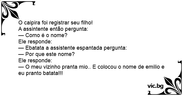 — O meu vizinho pranta mio.. E colocou o nome de emilio e eu pranto batata!!!