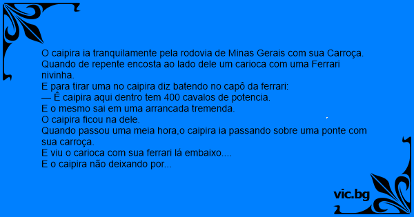 E o caipira não deixando por menos disse: