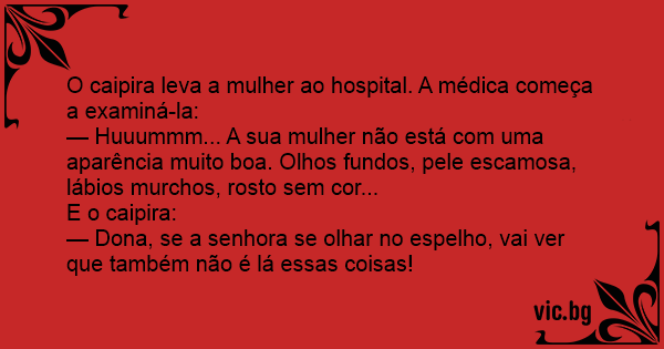 O caipira leva a mulher ao hospital. A médica começa a examiná-la: