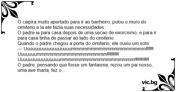 O caipira muito apertado para ir ao banheiro, pulou o muro do cimiterio e la ele fazia suas necessidades .