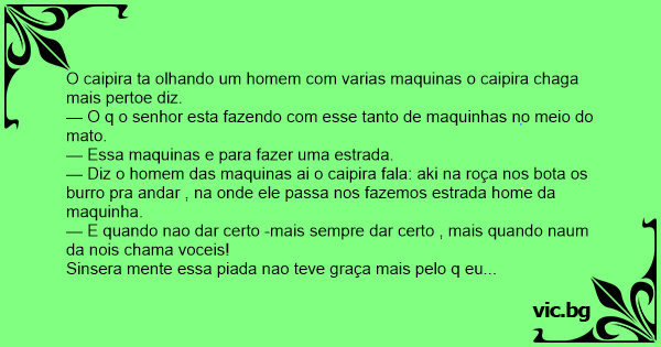 — Diz o homem das maquinas ai o caipira fala: aki na roça nos bota os вurrо pra andar , na onde ele passa nos fazemos estrada home da maquinha.