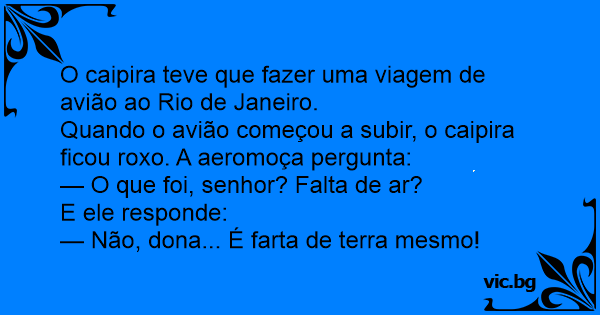 O caipira teve que fazer uma viagem de avião ao Rio de Janeiro.