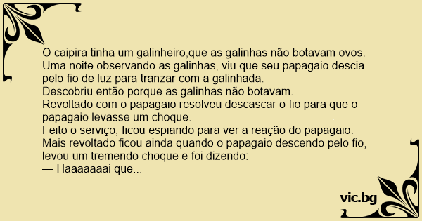 O caipira tinha um galinheiro,que as galinhas não botavam ovos.