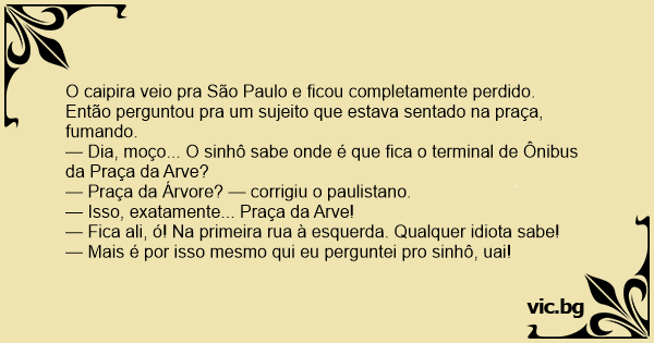 — Dia, moço... O sinhô sabe onde é que fiса o terminal de Ônibus da Praça da Arve?