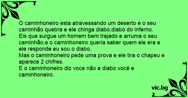 E o caminhoneiro diz voce não e diabo você e caminhoneiro.