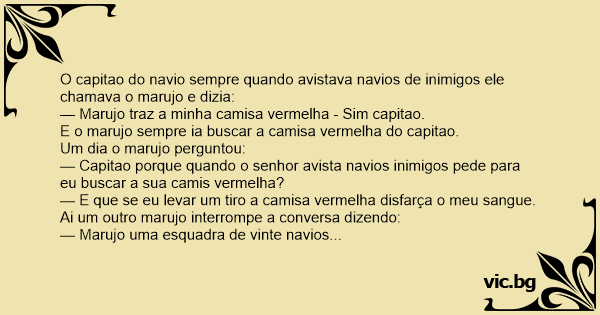 — Capitao porque quando o senhor avista navios inimigos pede para eu buscar a sua camis vermelha?