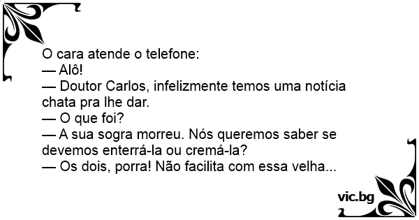 — A sua sogra morreu. Nós queremos saber se devemos enterrá-la ou cremá-la?